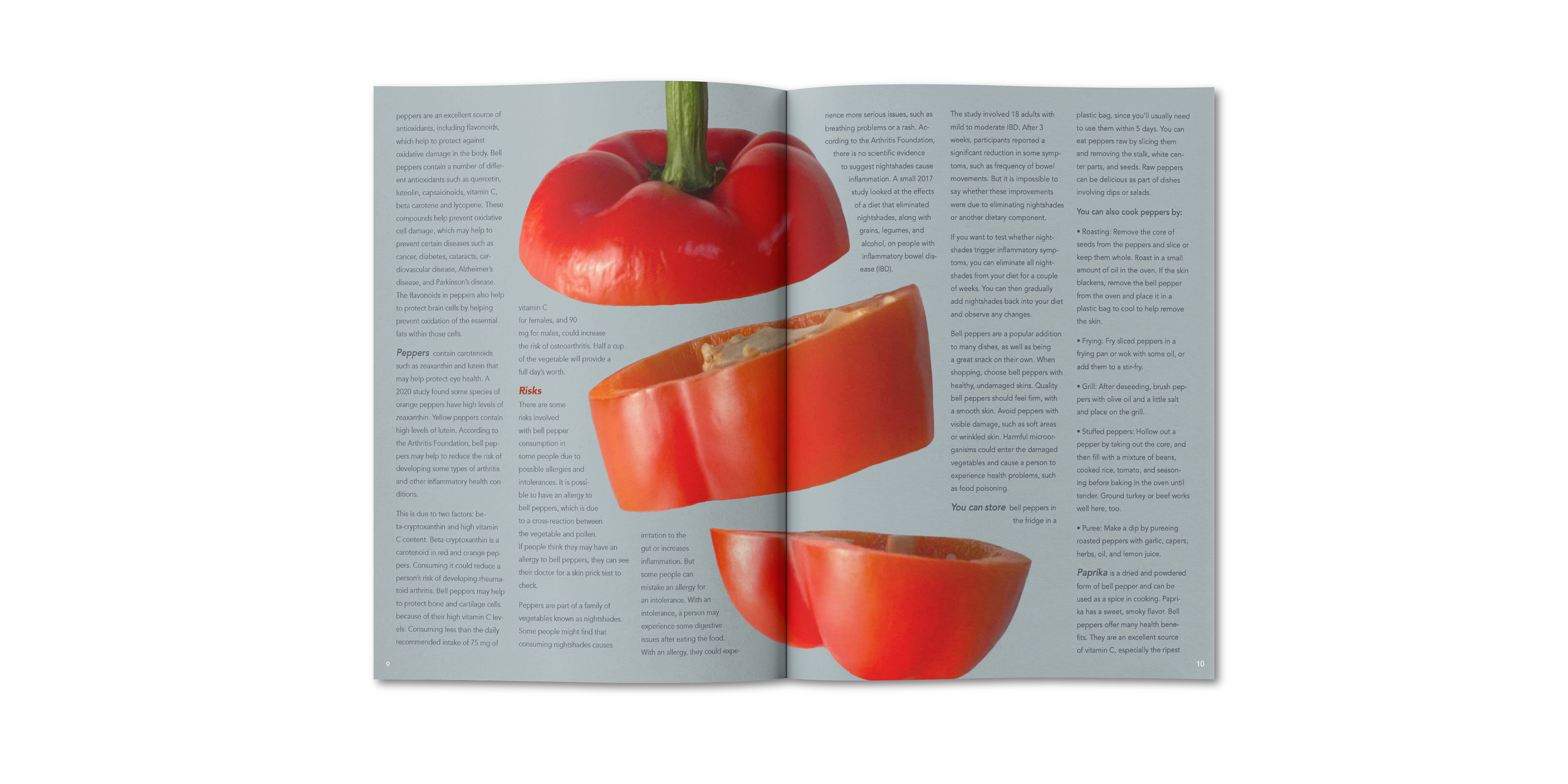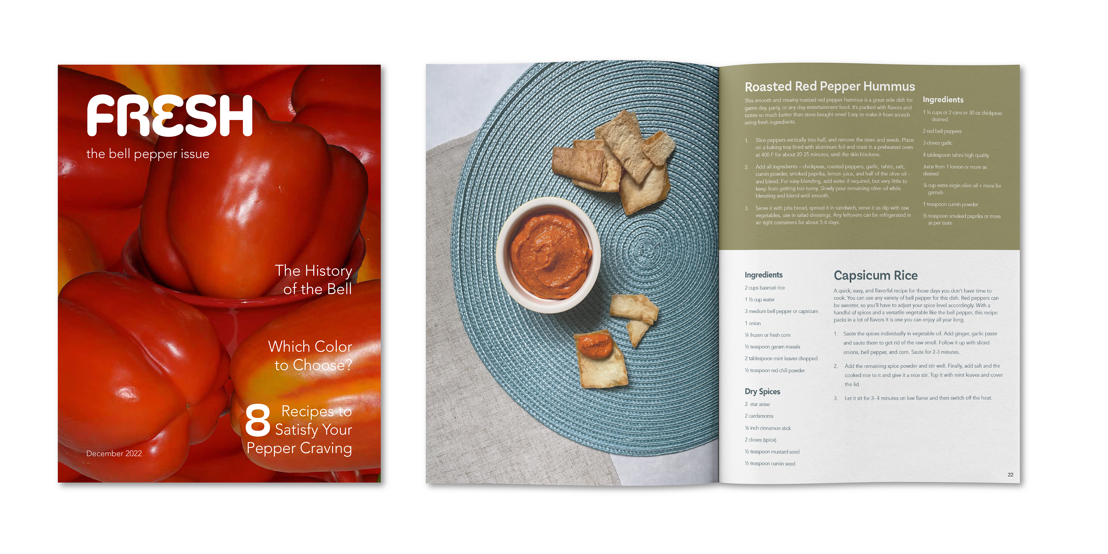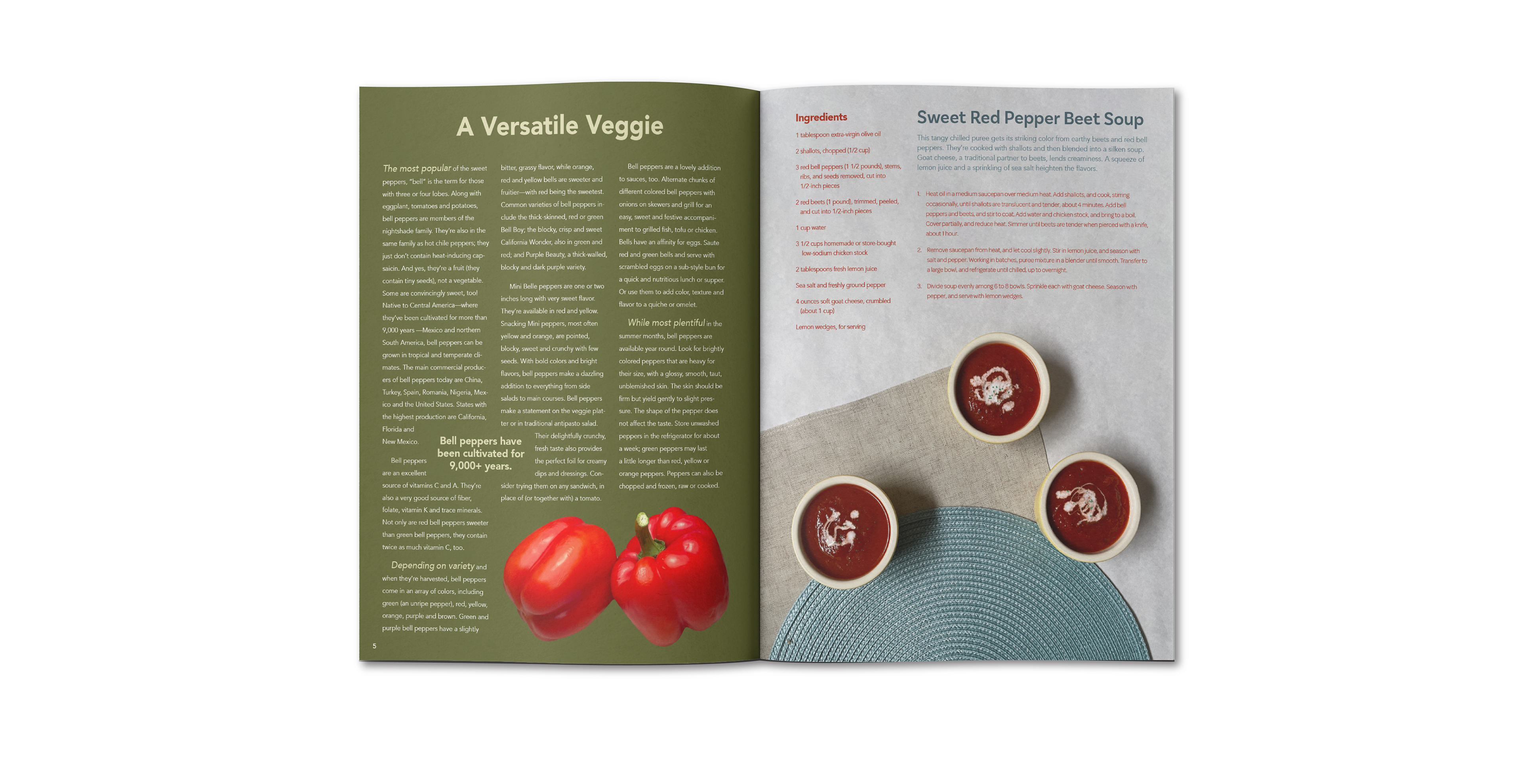 "Fresh" food magazine showcases a specific type of produce each month. In the bell pepper issue you'll learn about the history of capsicum, the differences in colors, and recipes that incorporate peppers.